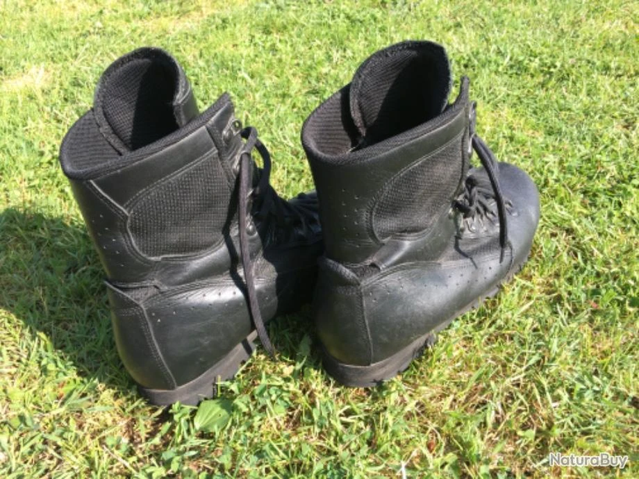 Jungle boots Meindl, qualitĂ© de fabrication reconnue. IdĂ©ales pour climat humide ou Ă©quatorial, Ă©vacue l’eau, protection contre les agressions extĂ©rieures type serpents ou autres insectes. Elles sont prĂŞtes Ă partir pour de nombreux kilomètres !